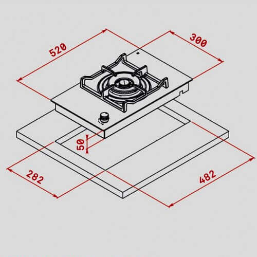 Kích thước khoét đá: 282 x 482 x 50 mm (dài x rộng x cao)