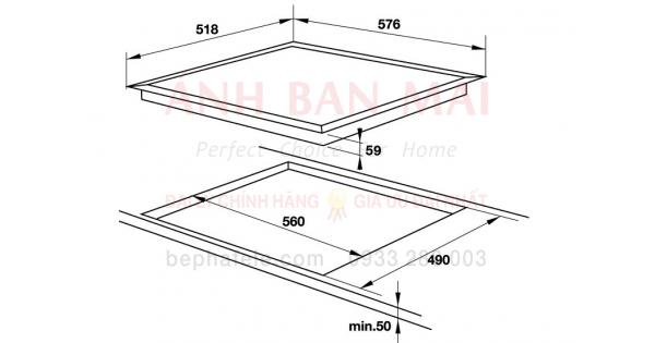 Kích thước lắp đặt: 560R x 490S x min50C mm