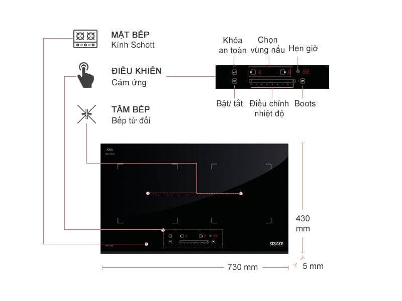 Thông số kỹ thuật bếp từ Steiger STG-IDK200