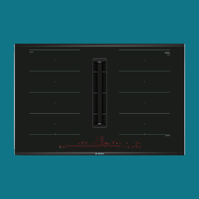 Bếp 4 vùng nấu, tách/ghép vùng nấu, MoveFunction, cảm biến chiên, giữ ấm, kính Schott Cera vát trước viền nhôm 2 bên;