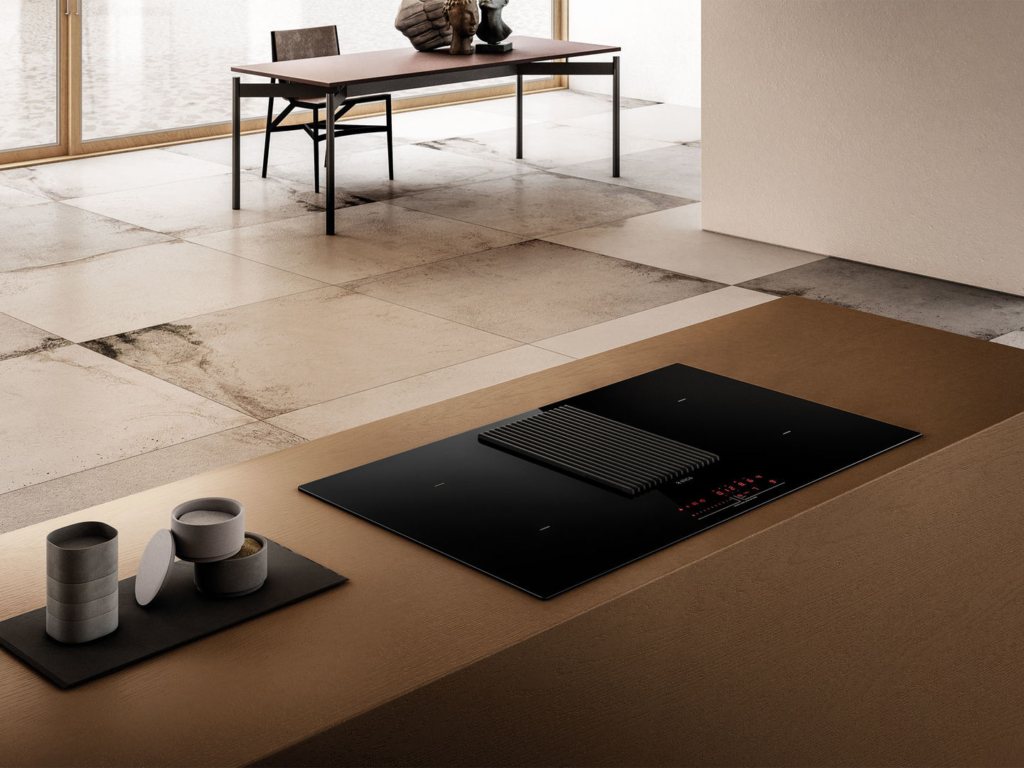Với Bếp từ kết hợp máy hút mùi NikolaTesla Prime, khi bạn bấm nút TỰ ĐỘNG HÚT MÙI, hệ thống sẽ tự động điều chỉnh công suất hút mùi tương ứng với số lượng vùng nấu đang sử dụng và công suất nấu từng vùng. Phía trước mặt bếp là một thanh điều khiển với các nút chỉnh cho cả vùng nấu và hệ thống hút mùi. Điều khiển trọn vẹn chỉ với một cú chạm. Khi chuyển sang chế độ tạm dừng (Standby), cỗ máy hút mùi mạnh mẽ dường như vô hình, chỉ còn Bếp từ kết hợp máy hút mùi NikolaTesla Prime kiêu hãnh đứng đó với từng đường nét đẹp mắt.
