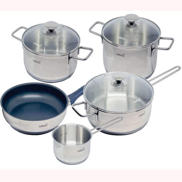 Bộ nồi Cata NewYork 5 chiếc cao cấp có 3 đáy dày dặn, giúp nấu ăn ngon và giữ nhiệt tốt hơn. Bề mặt nấu không trực tiếp tiếp xúc với nguồn nhiệt, không lo tạo ra phản ứng khi đun nấu.Sản phẩm có thể sử dụng tiện lợi trên nhiều loại bếp như bếp từ, bếp gas... Thành nồi trơn bóng, chống bám dính, giúp rửa trôi nhanh chóng dầu mỡ và các loại vết bẩn cứng đầu.