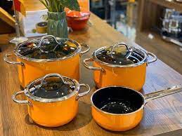Mang một vẻ ngoài sáng bóng với tone màu cam chủ đạo những chiếc nồi này thực sự nổi bật, bắt mắt trong gian bếp.