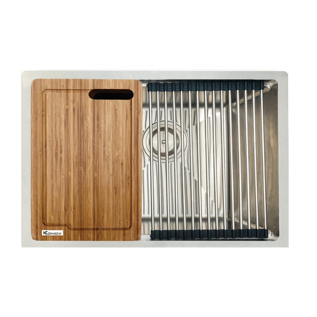 Dòng chậu hạ bậc – tích hợp công năng: thớt gỗ, rollmat