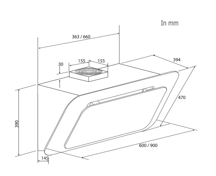 • Kích thước sản phẩm: (Cao x Rộng x Sâu mm): 470 x 900 x 394