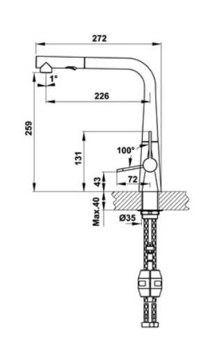 Khoảng 30–40cm, cho phép người dùng thao tác rửa thuận tiện trong toàn bộ bồn rửa.