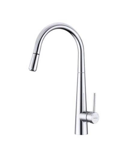 Đầu vòi có thể kéo dài để điều chỉnh hướng nước, hỗ trợ rửa nồi lớn hoặc làm sạch chậu hiệu quả – phù hợp với mọi không gian bếp hiện đại.