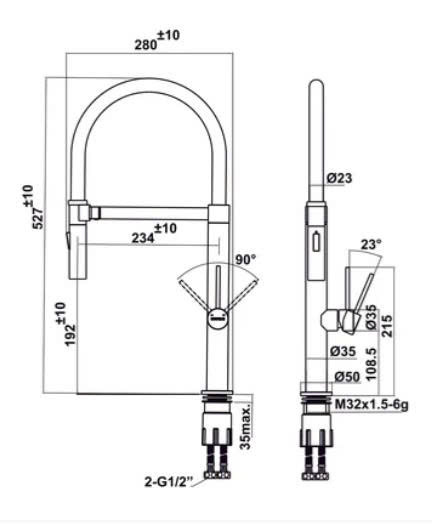 | Chiều dài đầu vòi kéo rút | Tối đa 50 cm |
